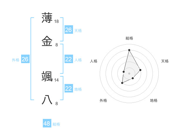 薄金 颯八さんを姓名の画数から五運を鑑定