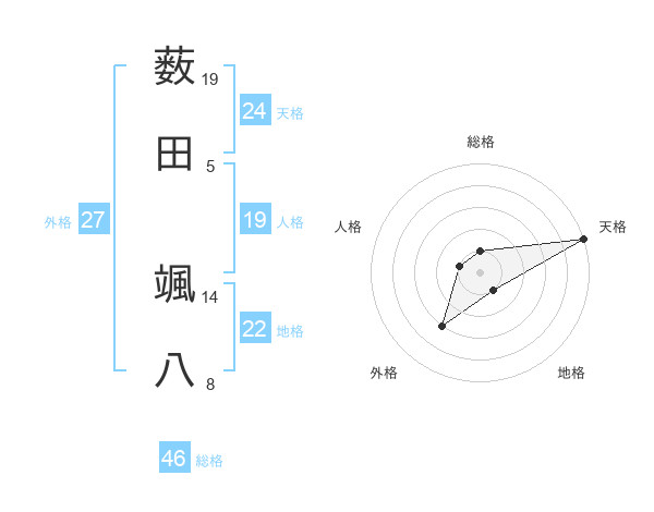 薮田 颯八さんを姓名の画数から五運を鑑定