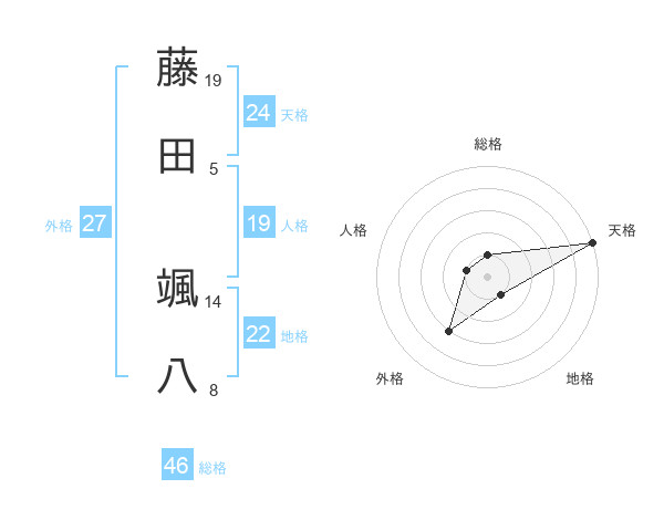 藤田 颯八さんを姓名の画数から五運を鑑定