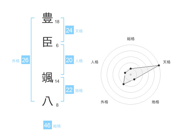 豊臣 颯八さんを姓名の画数から五運を鑑定