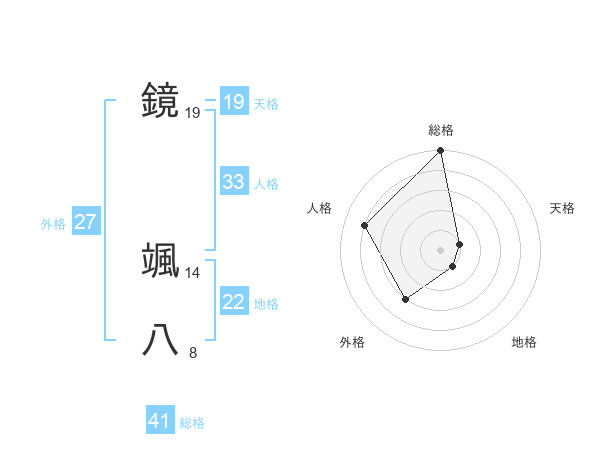 鏡 颯八さんの総格は41画の5点