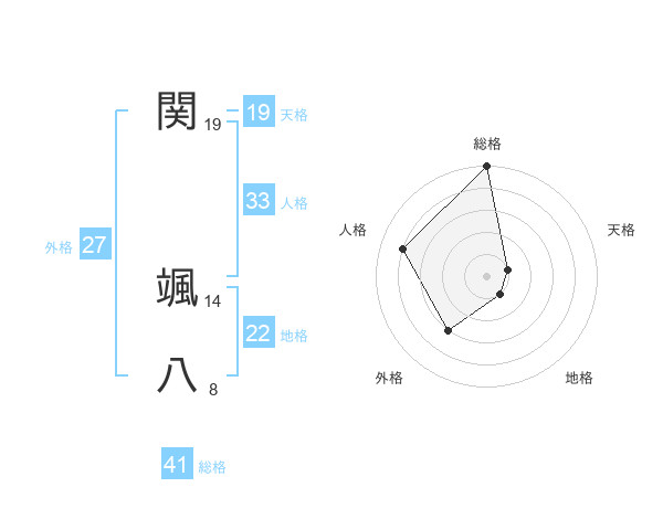 関 颯八さんの外格は27画の3点!
