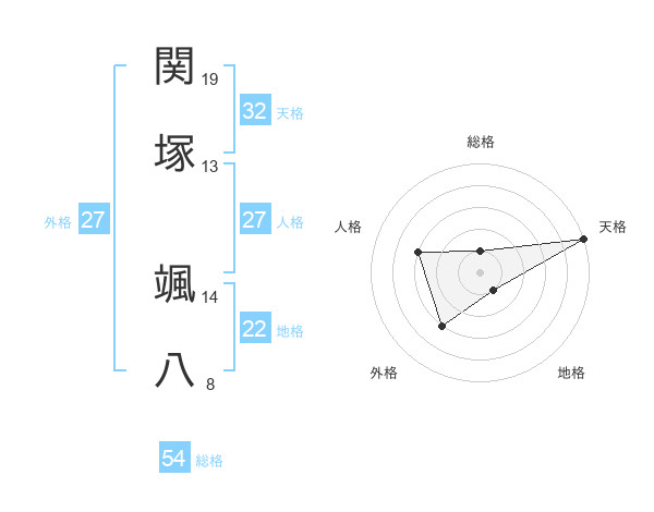 関塚 颯八さんの外格は27画の3点