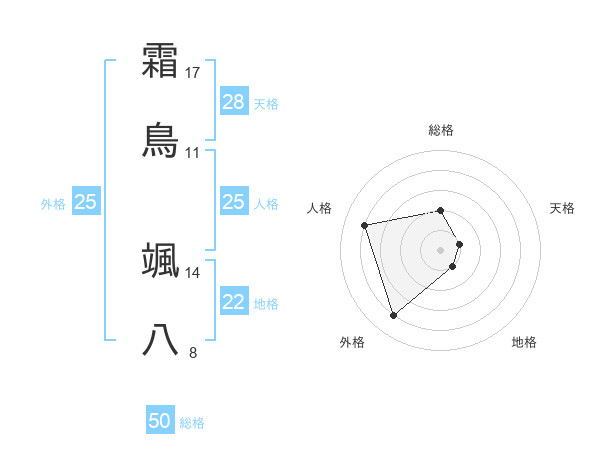 霜鳥 颯八さんの総格は50画の2点!