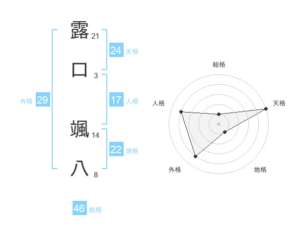 露口 颯八さんの天格は24画の5点!