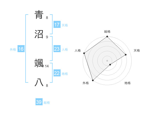 青沼 颯八さんを姓名の画数から五運を鑑定