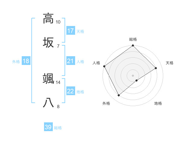 高坂 颯八さんを姓名の画数から五運を鑑定