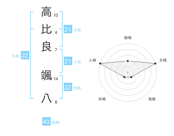 高比良 颯八さんを姓名の画数から五運を鑑定