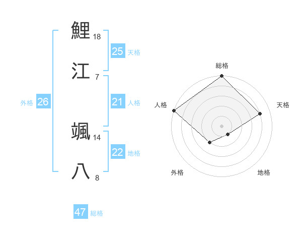 鯉江 颯八さんの総格は47画の5点!