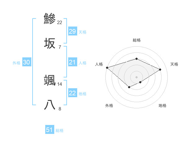鰺坂 颯八さんの総格は51画の3点!
