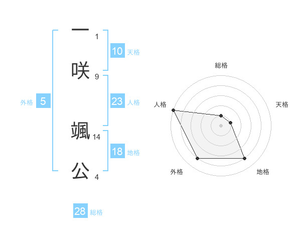 一咲 颯公さんの人格は23画の5点!