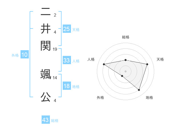二井関 颯公さんの天格は25画の4点!