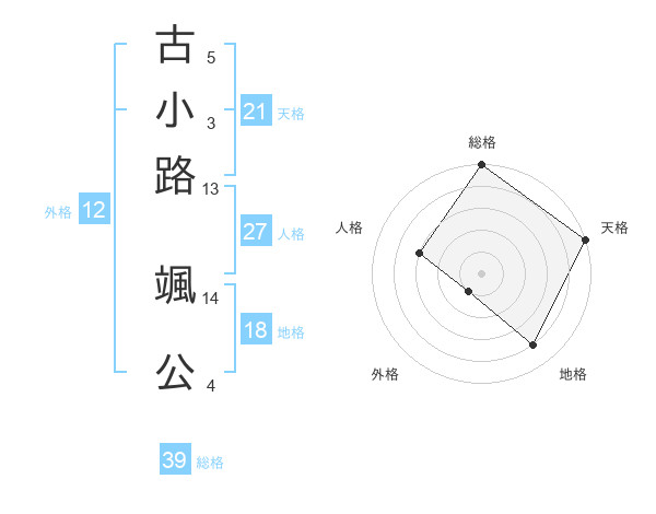古小路 颯公さんを姓名の画数から五運を鑑定