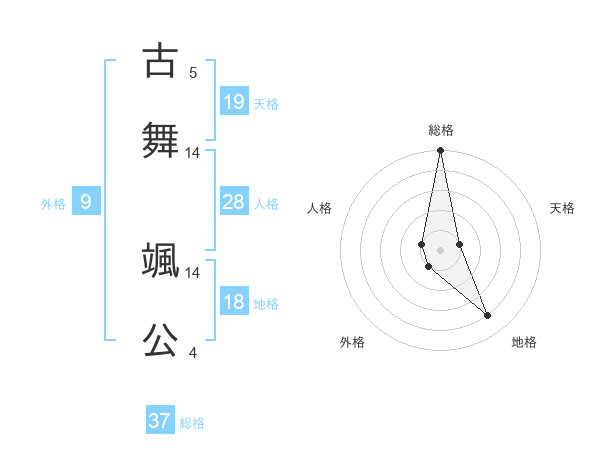 古舞 颯公さんの総格は37画の5点!