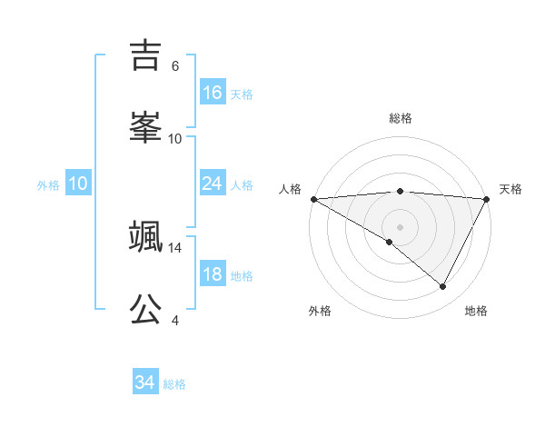 吉峯 颯公さんの総格は34画の2点!