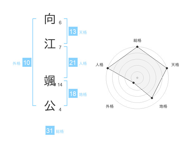 向江 颯公さんの総格は31画の5点!