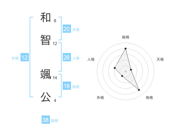 和智 颯公さんの総格は38画の4点!