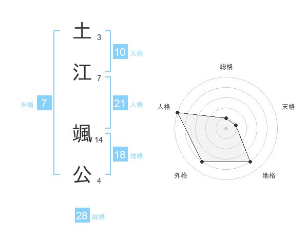 土江 颯公さんの人格は21画の5点!