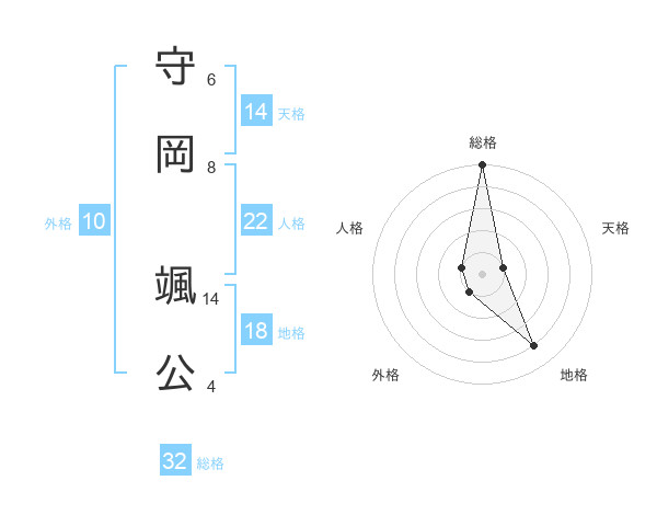 守岡 颯公さんを姓名の画数から五運を鑑定
