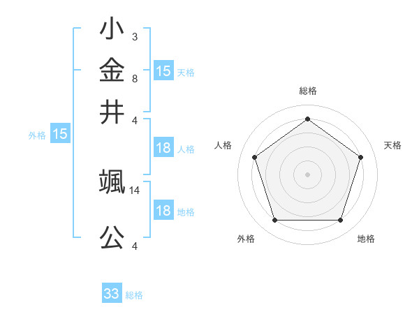 小金井 颯公さんを姓名の画数から五運を鑑定