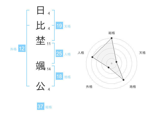 日比埜 颯公さんの総格は37画の5点!