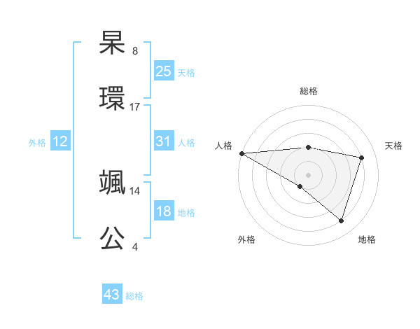 杲環 颯公さんの天格は25画の4点!