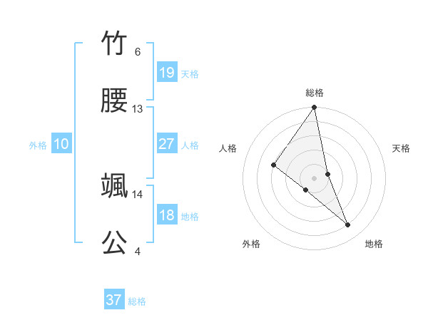 竹腰 颯公さんの総格は37画の5点!