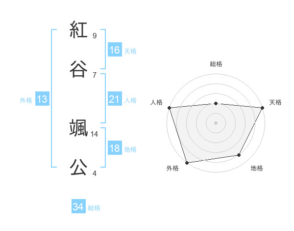 紅谷 颯公さんの天格は16画の5点!