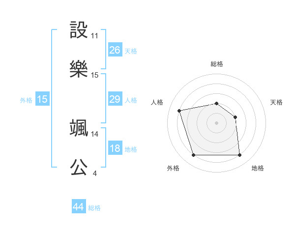設樂 颯公さんを姓名の画数から五運を鑑定