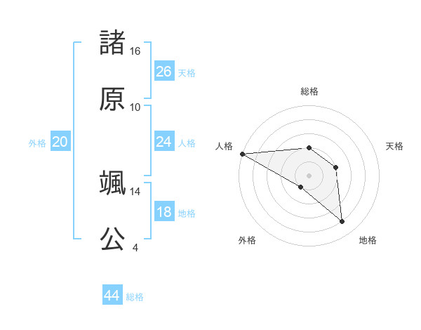 諸原 颯公さんの天格は26画の2点!