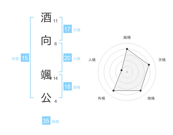 酒向 颯公さんの総格は35画の4点!