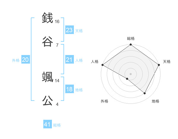 銭谷 颯公さんを姓名の画数から五運を鑑定