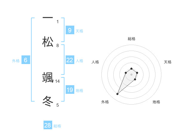 一松 颯冬さんの人格は22画の1点!