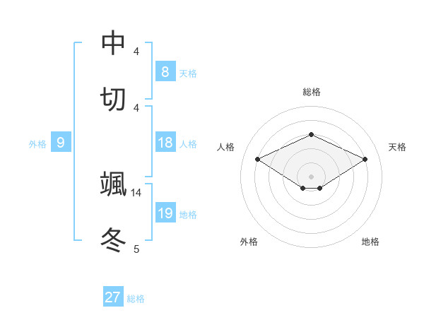 中切 颯冬さんを姓名の画数から五運を鑑定
