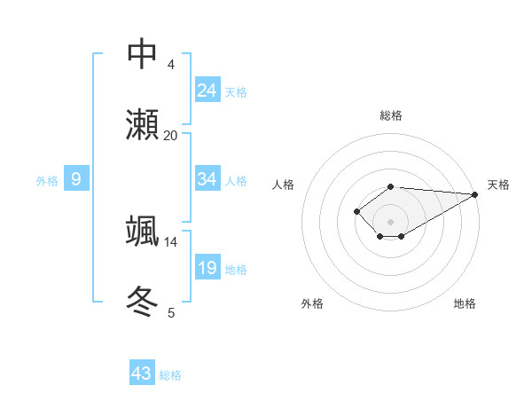 中瀬 颯冬さんの天格は24画の5点!