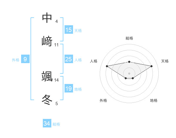 中﨑 颯冬さんを姓名の画数から五運を鑑定