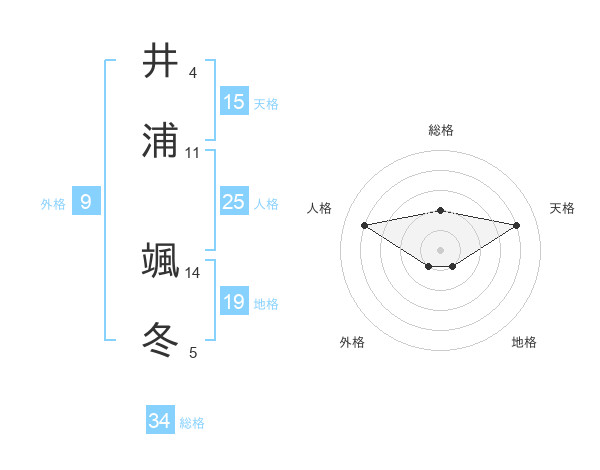 井浦 颯冬さんの天格は15画の4点!