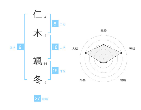 仁木 颯冬さんの天格は8画の4点!