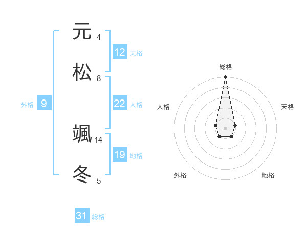 元松 颯冬さんの総格は31画の5点!
