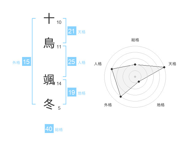 十鳥 颯冬さんの天格は21画の5点!