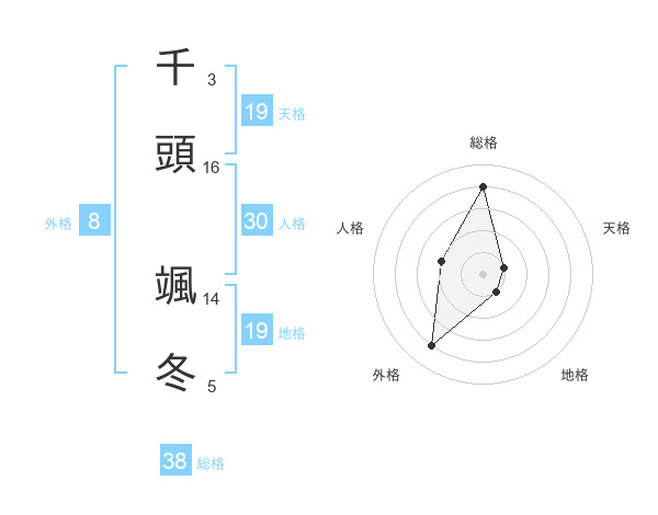 千頭 颯冬さんを姓名の画数から五運を鑑定