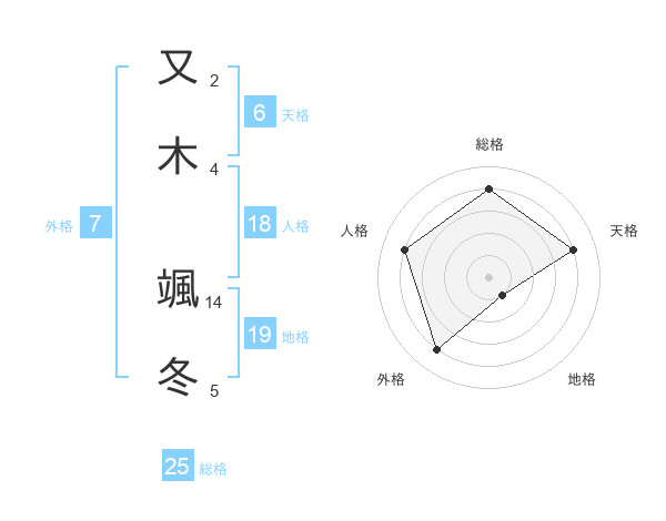 又木 颯冬さんの総格は25画の4点!