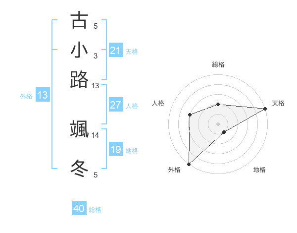 古小路 颯冬さんを姓名の画数から五運を鑑定