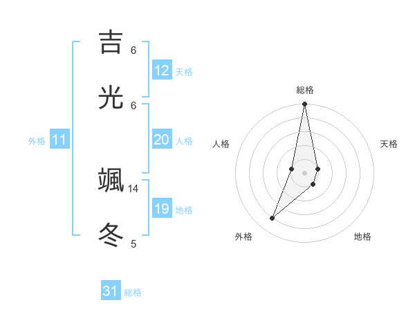 吉光 颯冬さんの総格は31画の5点!