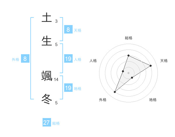 土生 颯冬さんを姓名の画数から五運を鑑定
