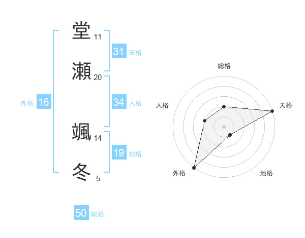堂瀬 颯冬さんの総格は50画の2点!