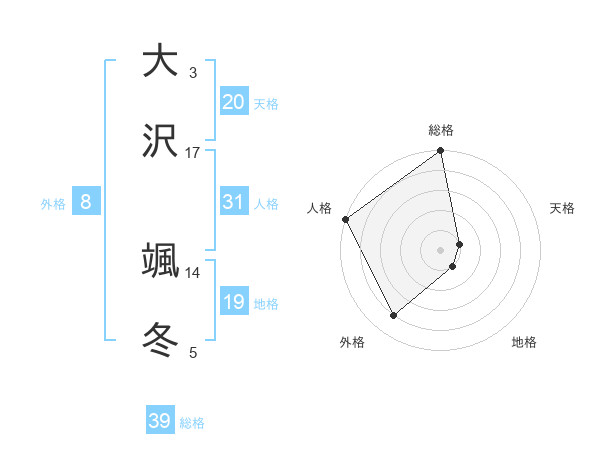 大沢 颯冬さんを姓名の画数から五運を鑑定