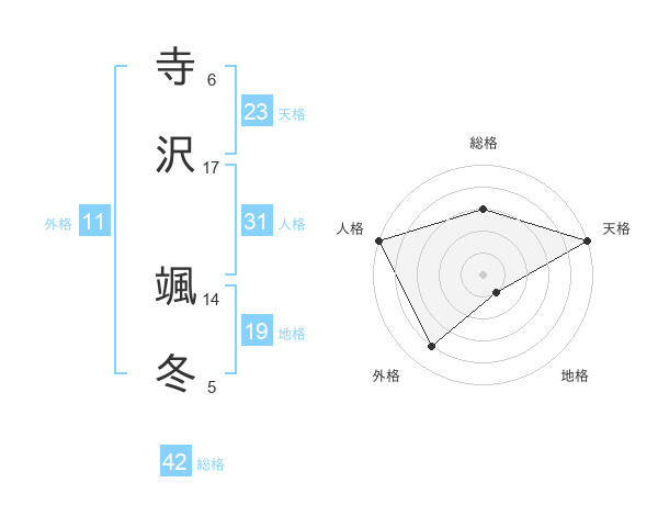 寺沢 颯冬さんの天格は23画の5点!