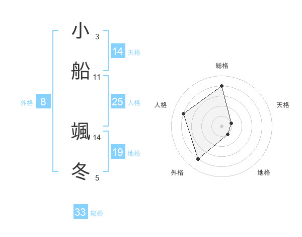 小船 颯冬さんの総格は33画の4点!