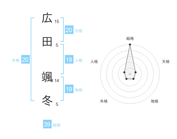 広田 颯冬さんを姓名の画数から五運を鑑定